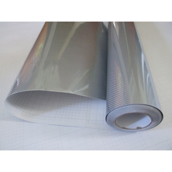 Strieborná karbónová fólia, 5D so vzduchovými kanálikmi, hrúbka fólie aj s lepidlom je 0.18 mm. Teplotná odolnosť od -30°C do +80°C. Strieborná karbónová fólia je balená v rolke ktorej šírka je 1.52m, takže umožňuje pokryť všetky časti vozidla z jedného kusu. Povrch fólie je vysoko lesklý a hladký, karbón je akoby zaliaty v ochrannej vrstve. Obsahuje tretiu vrstvu pre bezpečnú aplikáciu. Viac foto 5D karbónu nájdete tu.